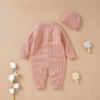 Infant Winter Jumpsuit and Cap, Solid Color Long Sleeve Single-breasted Knitted Romper