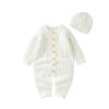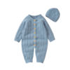 Infant Winter Jumpsuit and Cap, Solid Color Long Sleeve Single-breasted Knitted Romper