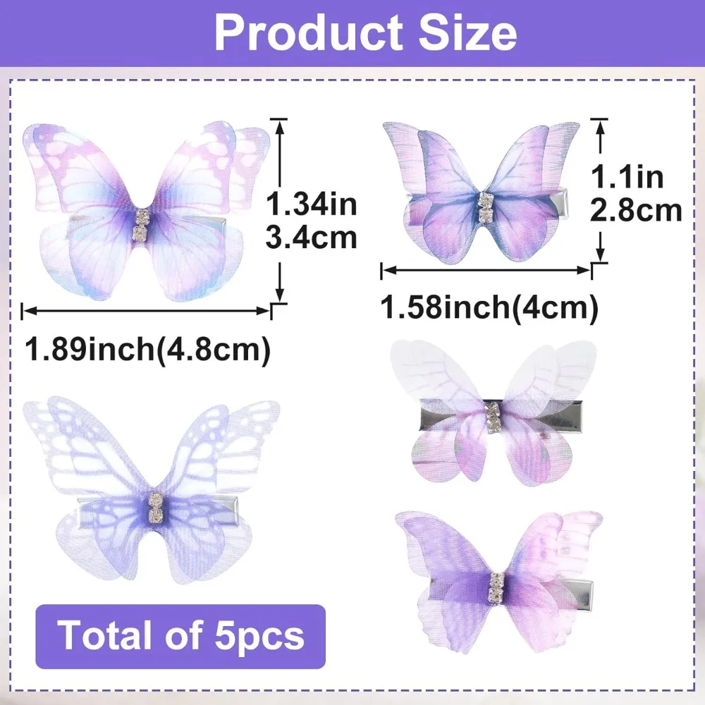 5pcs Butterfly Hair Clips, Non-Slip Organza Hairpins