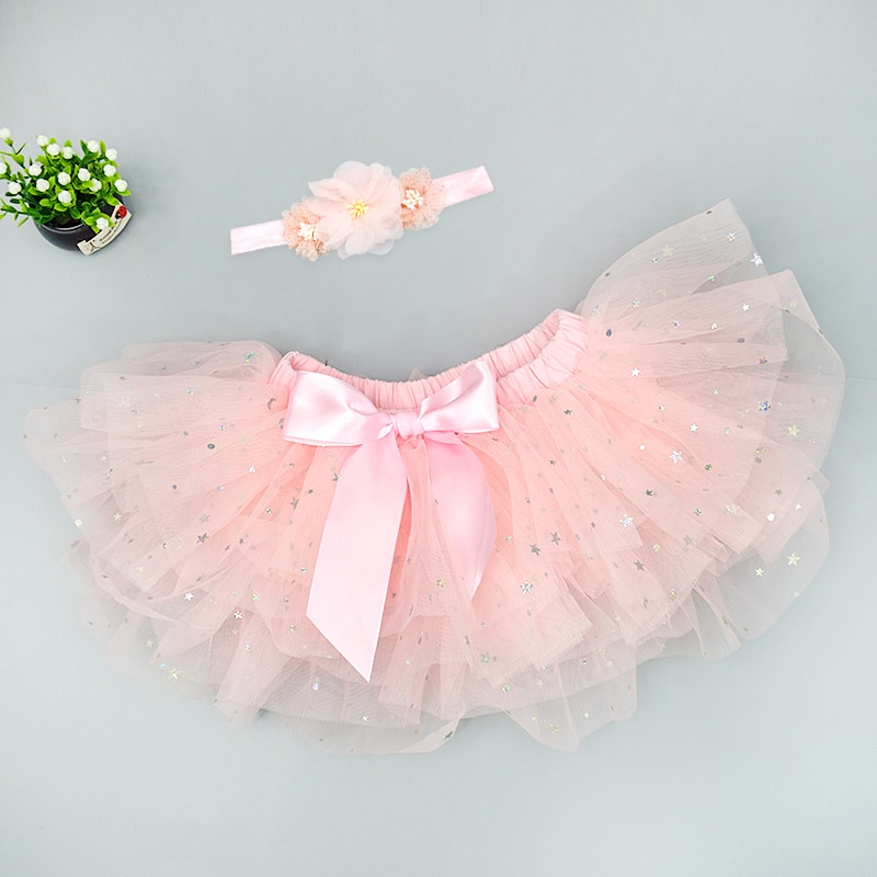 Baby Girl’s Mesh Skirt with Bow and Matching Color Headband