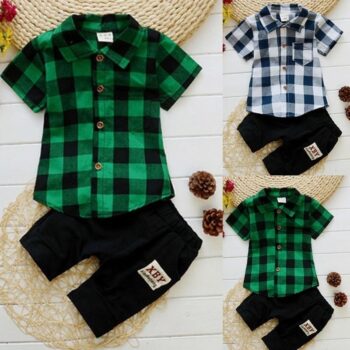 Boys’ Casual Summer Plaid Shirt and Shorts
