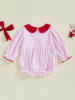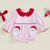 Baby Girl Christmas Plaid Romper Long Sleeve Doll Collar Santa Claus Embroidery Jumpsuit